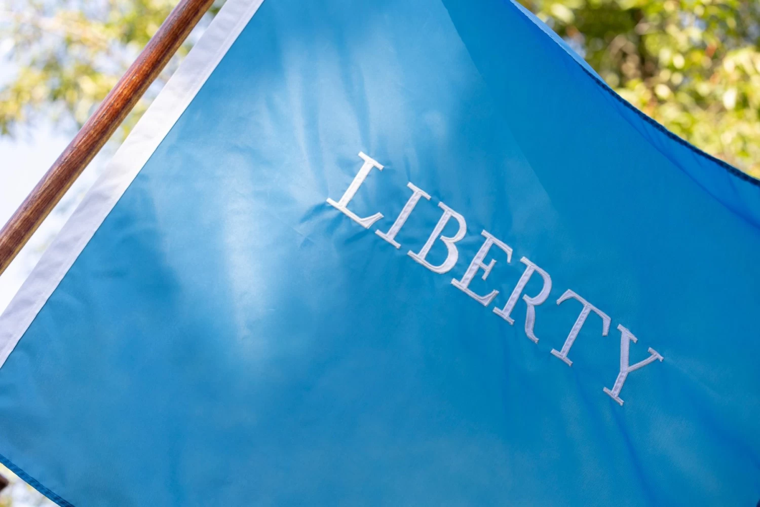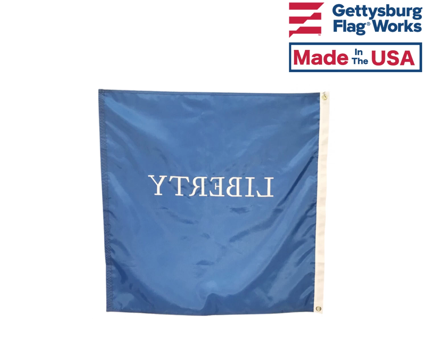 Historic Schenectady Liberty Flag of 1771, recreated for outdoor display. Distinctively shaped, featuring fully sewn appliqué nylon letters. 100% Made in the USA.