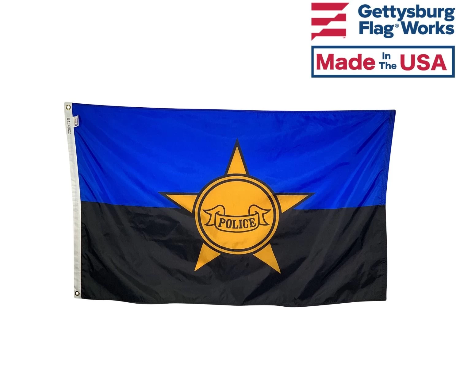 Police Remembrance Flag with with canvas header and grommets. High quality outdoor flag.