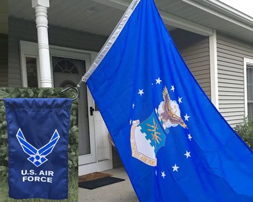 Show your support for the US Air Force pride with this handsome pair of outdoor flags! Bundle includes a 3×5′ outdoor Air Force flag and a garden flag.