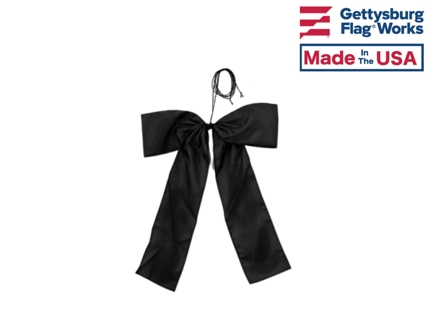100% Nylon with cord for hanging. This is to be attached to the top grommet of a flag that can not be lowered to half mast during times of mourning. Made in USA
