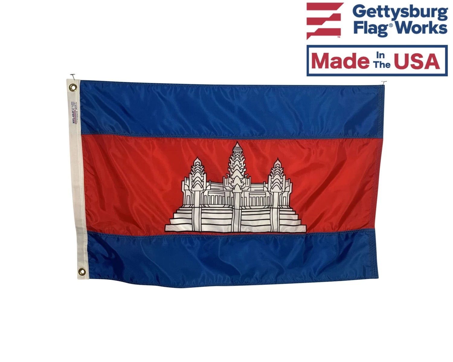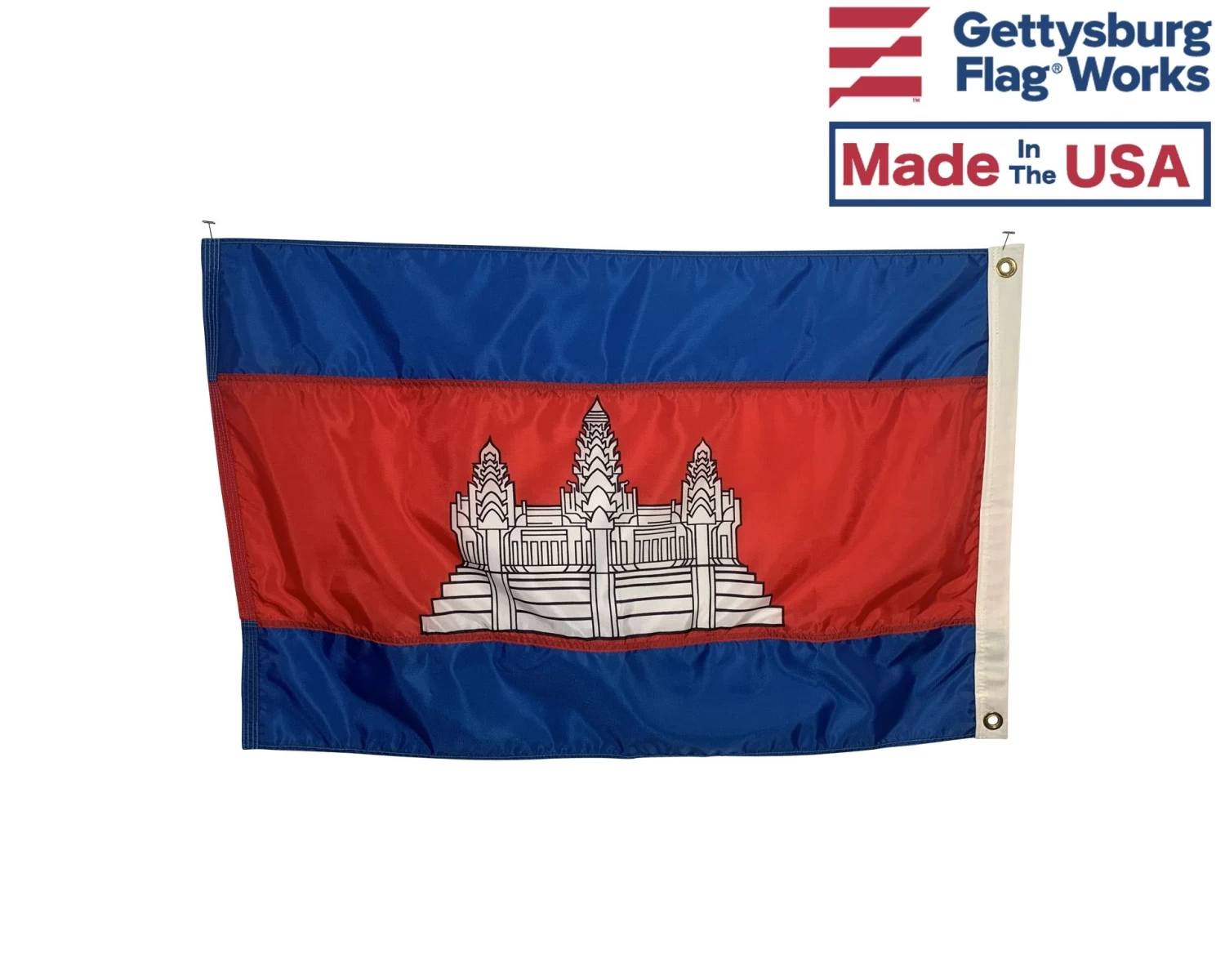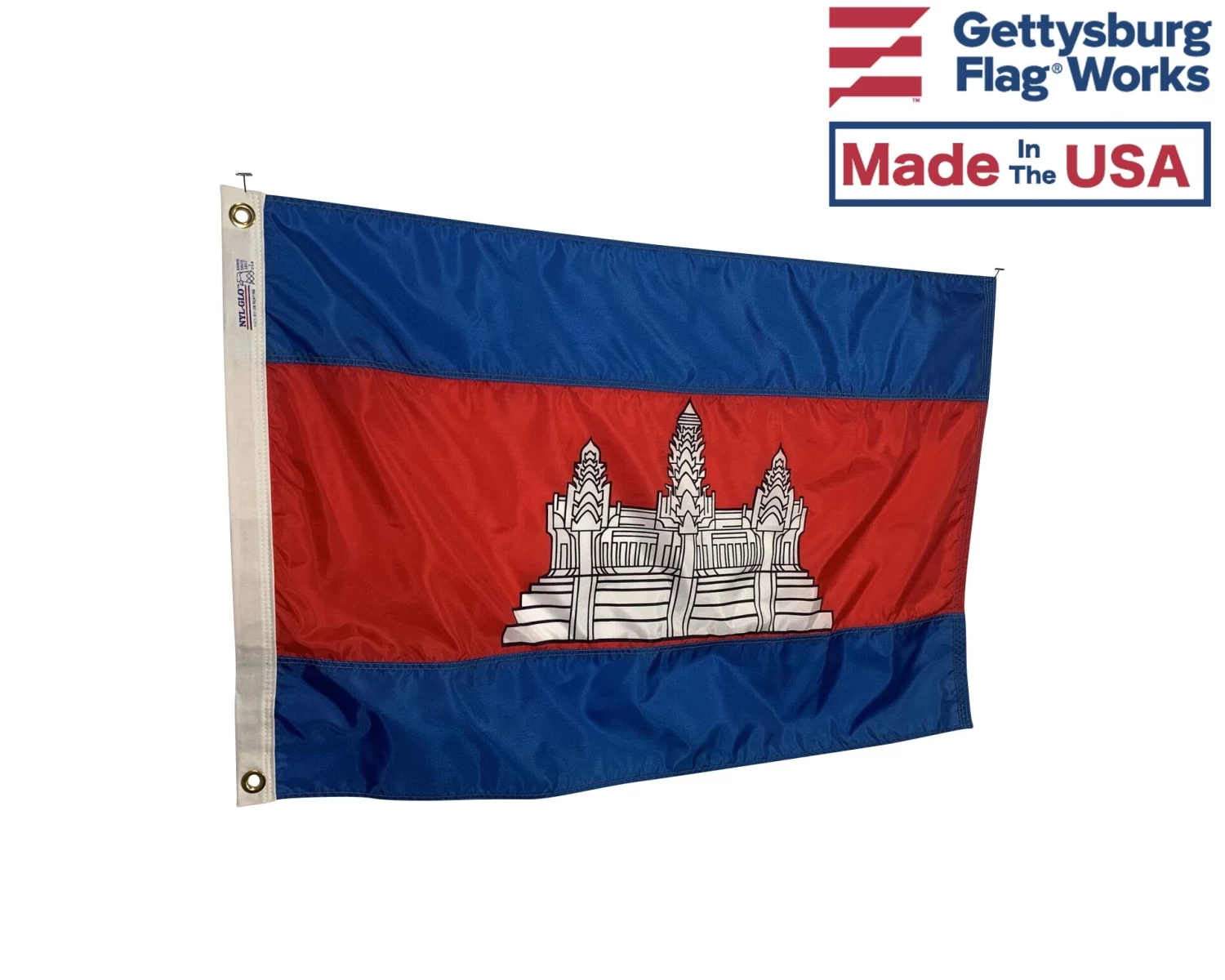 Beautiful, high-quality nylon Cambodia flags for mounting on most flagpoles.