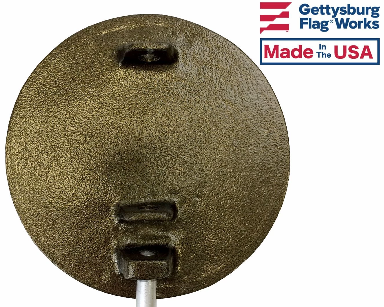 - Gold Solid Bronze 6″ Diameter plaque mounted on 24″ tall X 5/16″ diameter brass rod