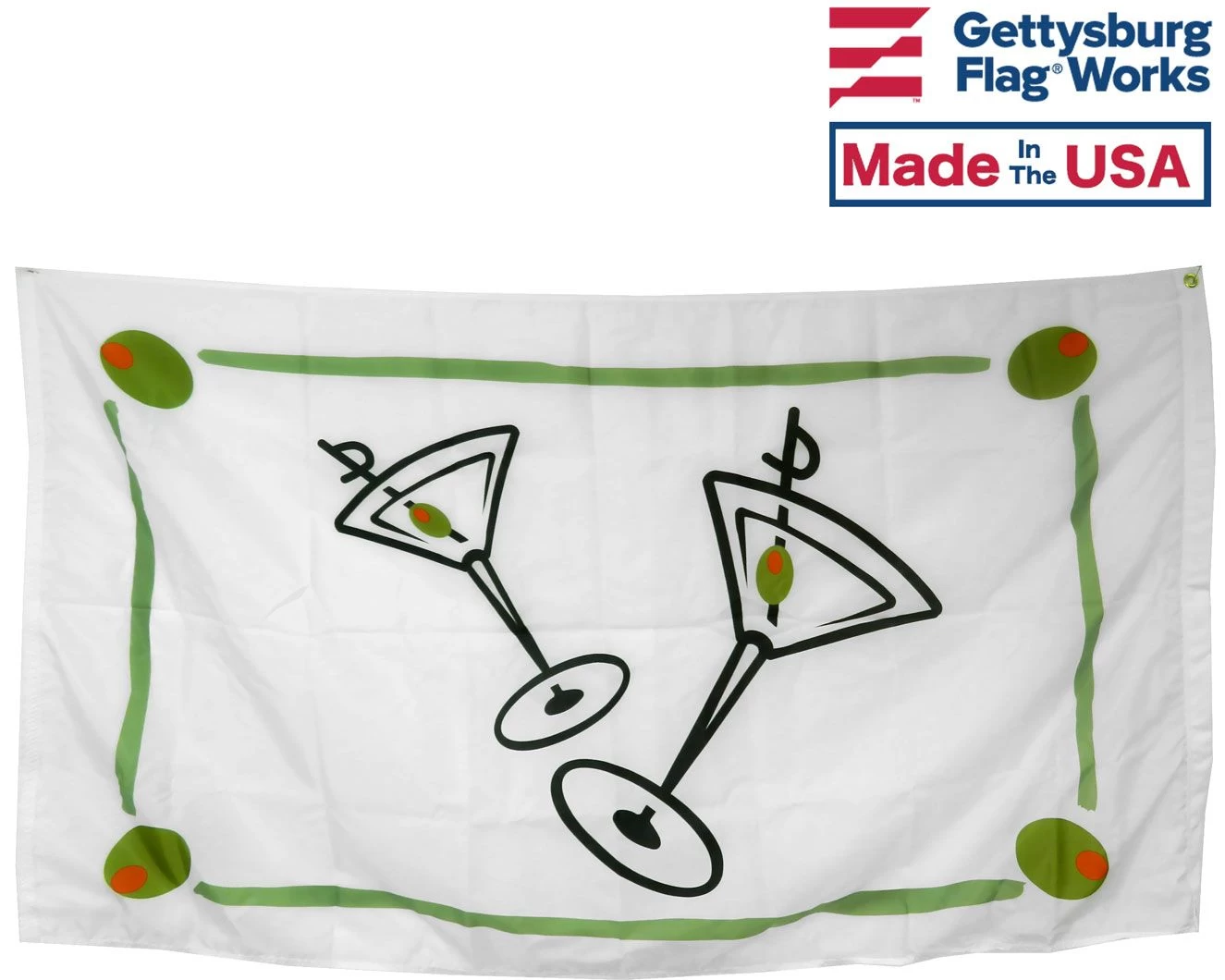 Express your love for the all-important and popular Martini with this cocktail flag and cocktail banner. Digitally printed on polyester, this three colored print is vibrant enough to be seen from afar. People will never forget to include the olive in your Martini when you’ve got this hanging from your house or on your wall. Let your guests know they’re in for a good time!