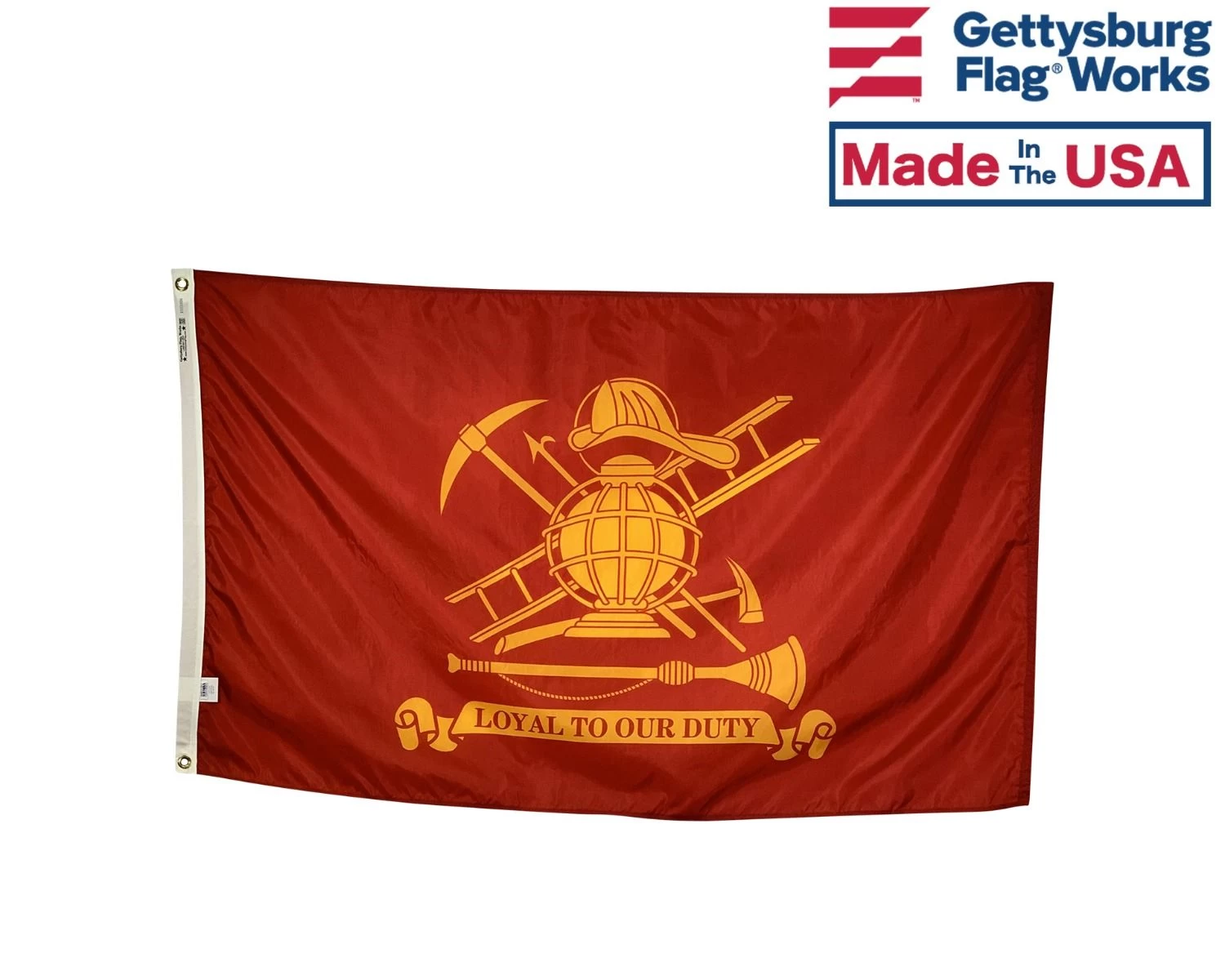 Nylon fireman flag with with canvas header and grommets. High quality outdoor flag. Loyal to our duty.