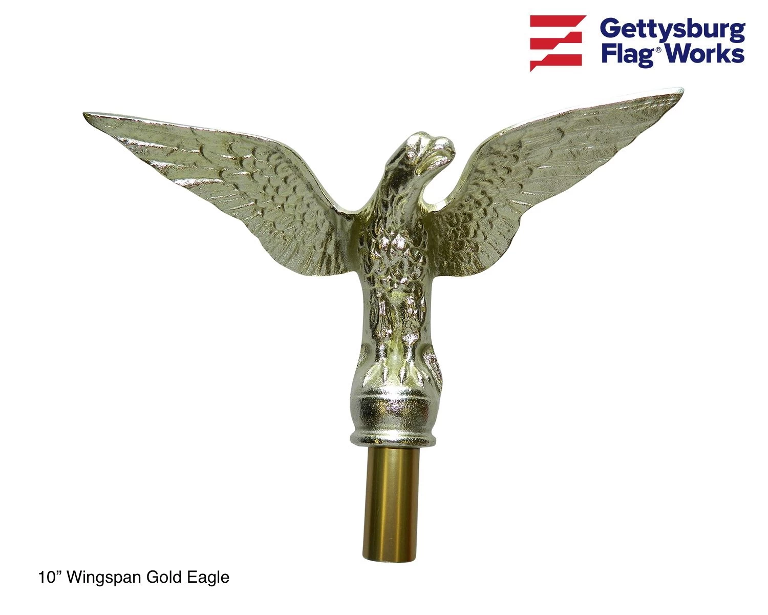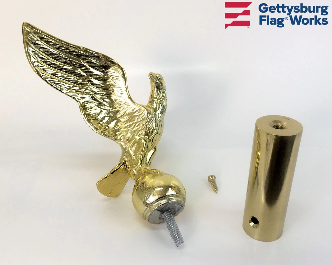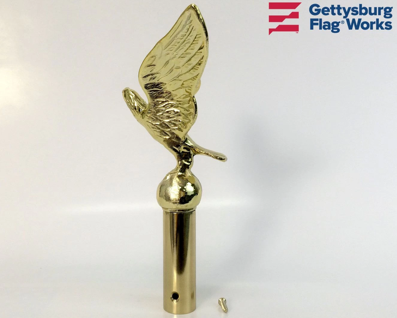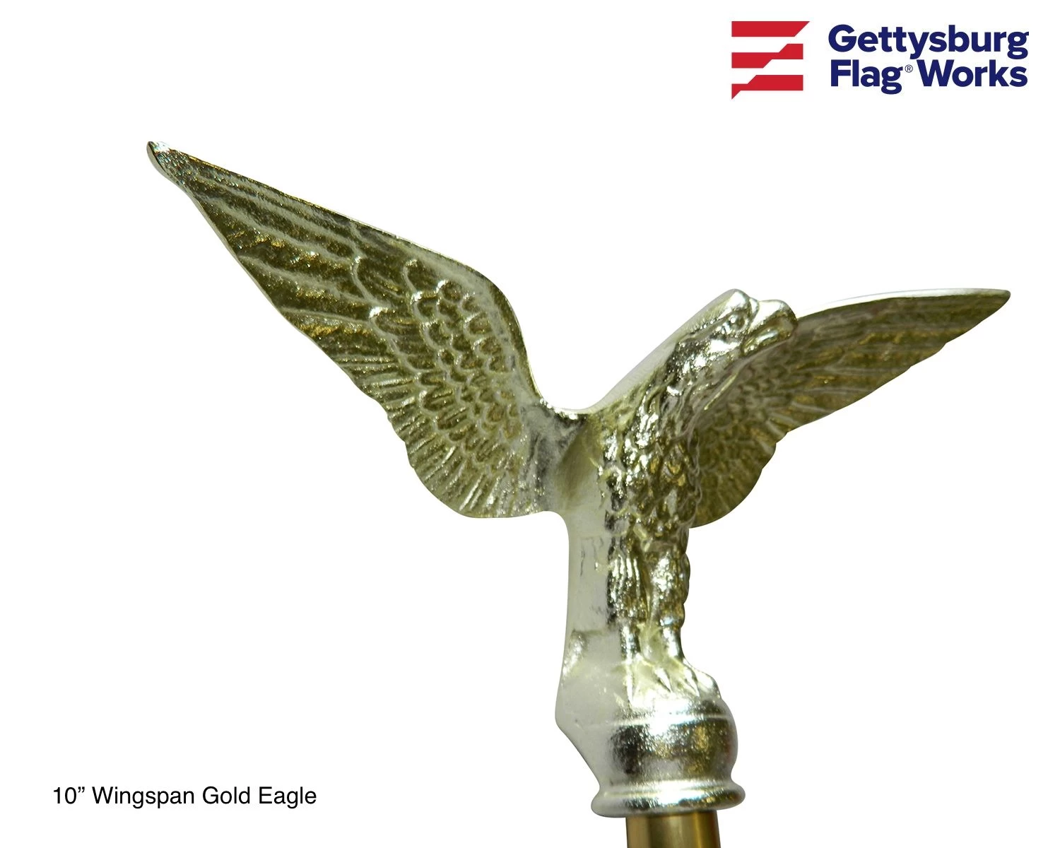 Beautiful Flying Eagle finial for your indoor or parade flag set. Available in different metal color finishes