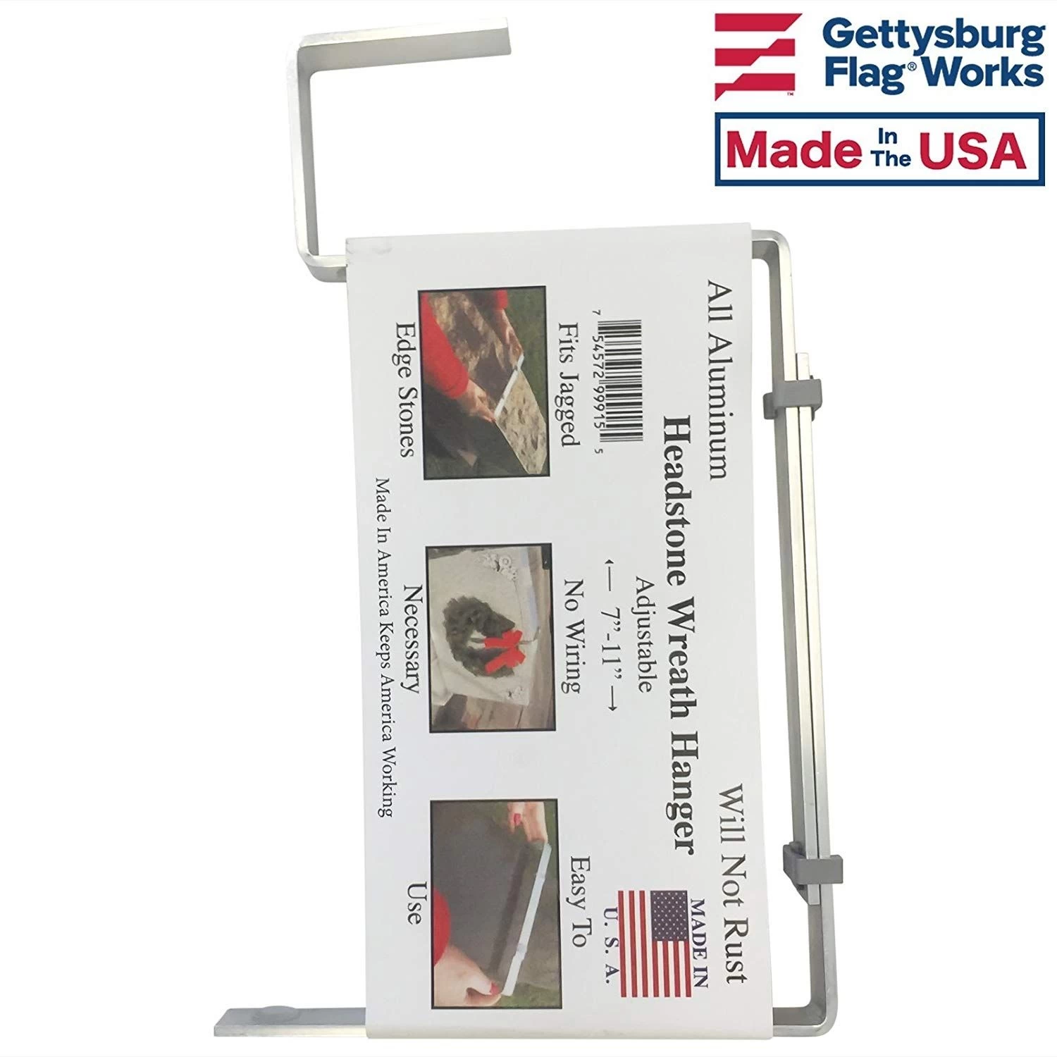 A simple, easy to use way to hang your wreath or decoration on your loved ones grave. This aluminum hanger adjusts to fit headstones from 7 to 11 inches in width and will never rust. It’s simple to use and requires no wiring. Made in the USA.