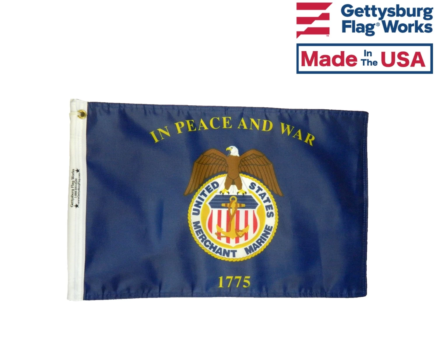 Digitally printed, double sided Merchant Marine flag, made for display on your motorcycle.