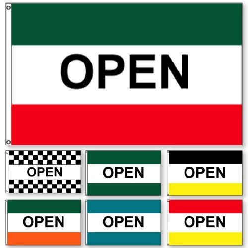Bring in customers with a colorful waving open flag.
