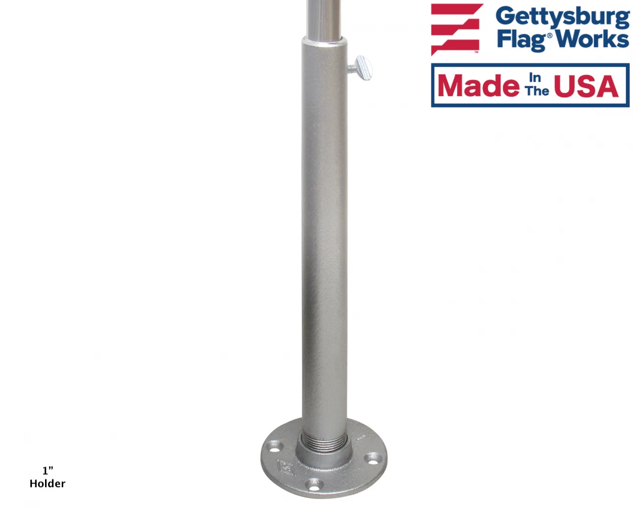 Flagpole holders with pre-existing holes allowing for mounting to surfaces for permanent installation.