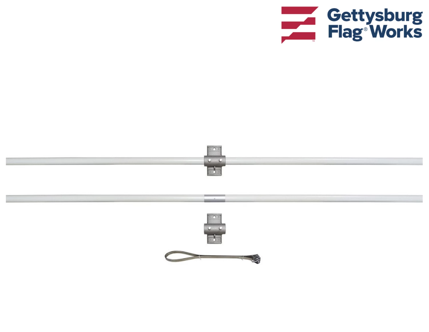 Premium Fiberglass Avenue banner set featuring a thicker diameter pole and aluminum reinforced receptacle casing. This is a complete set for mounting a pair of avenue banners to your telephone pole.