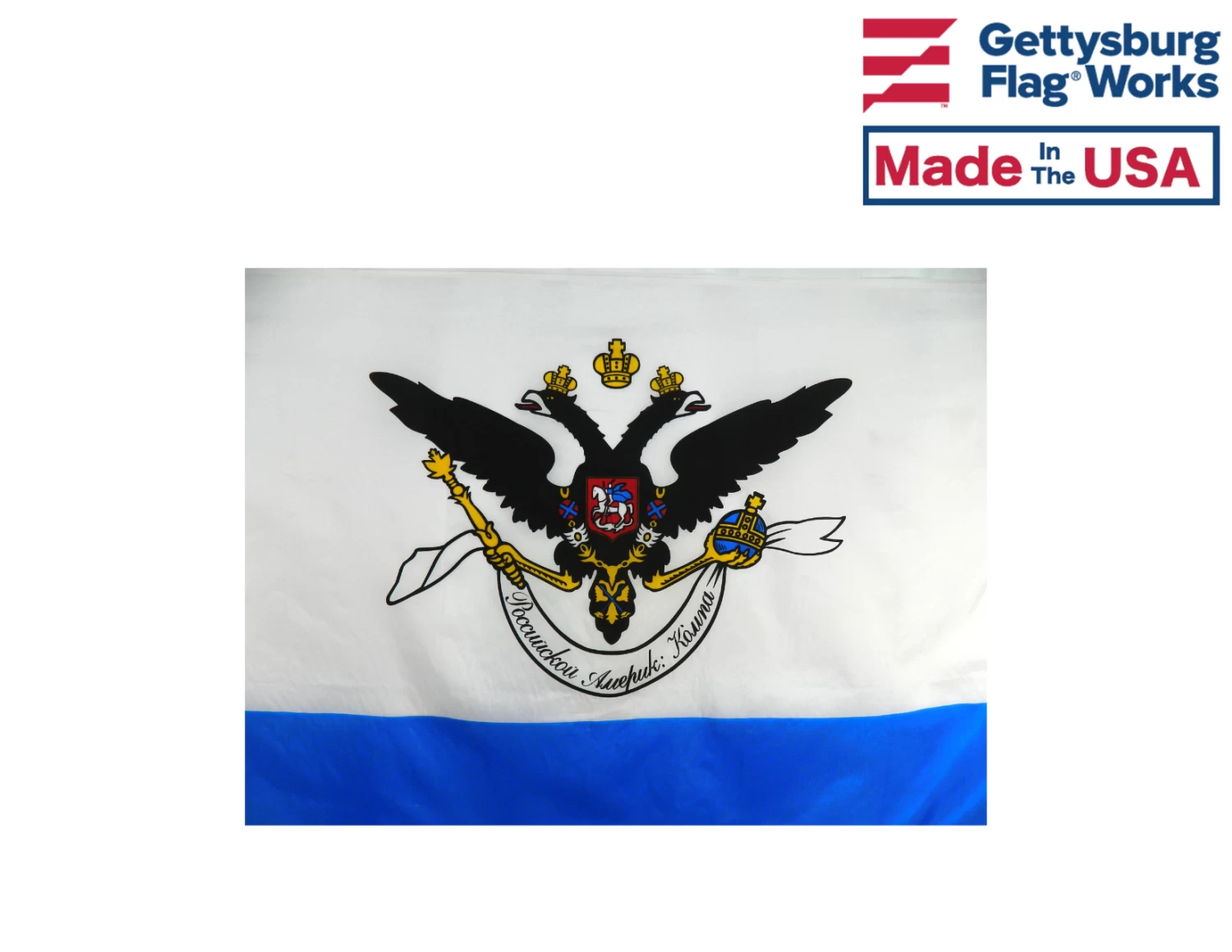A high-quality historical Russian American Company flag.