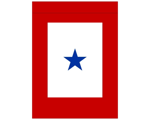 One blue star, service star banner. Signifies one family member deployed in the United States military.