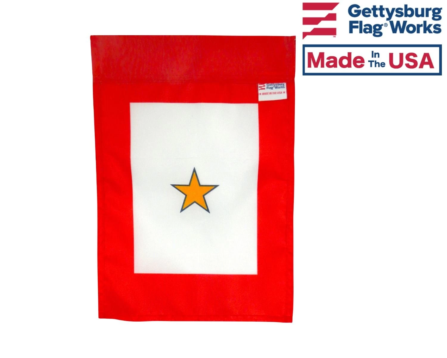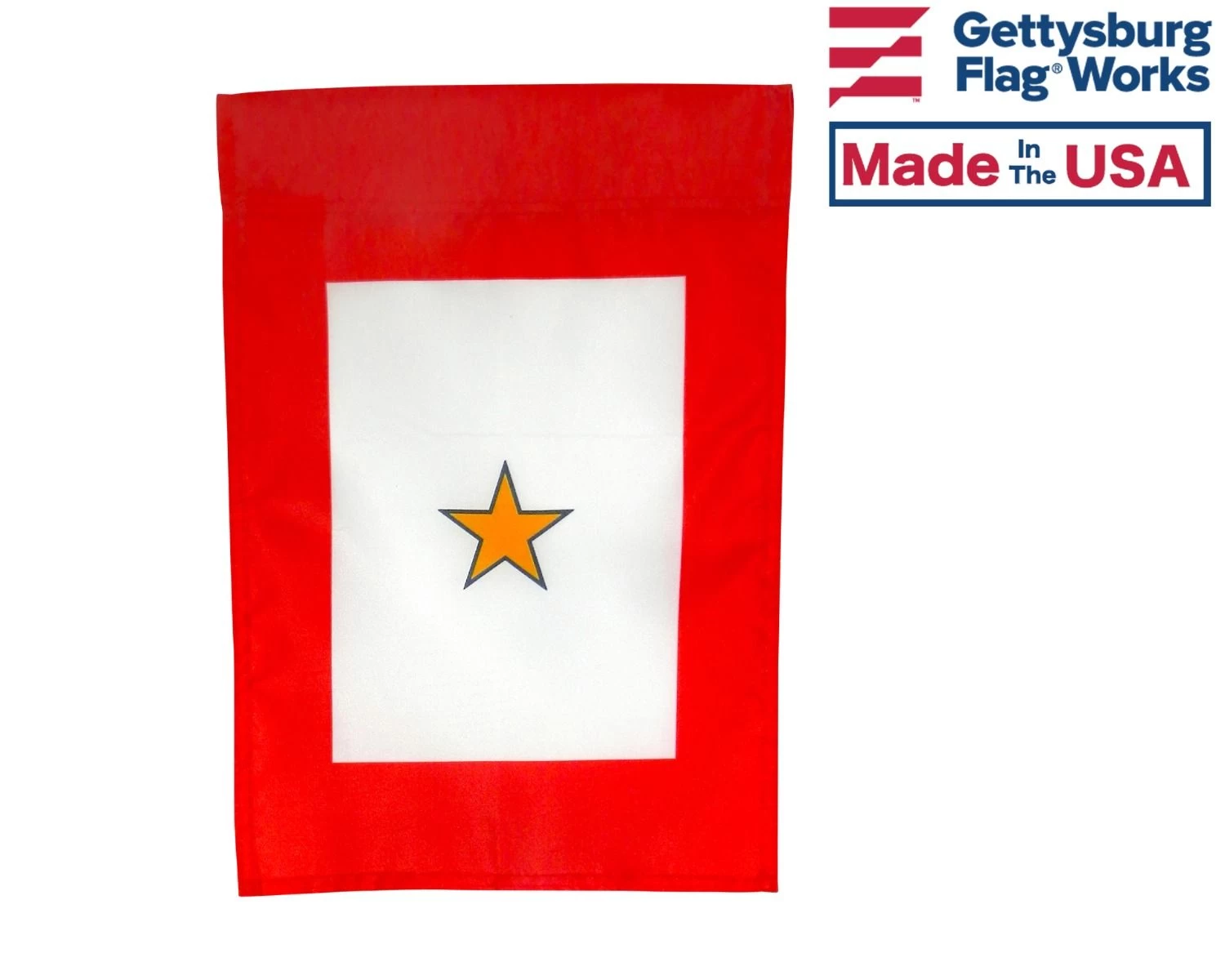 One gold star, service star banner. Signifies one family member killed while serving in the United States military.
