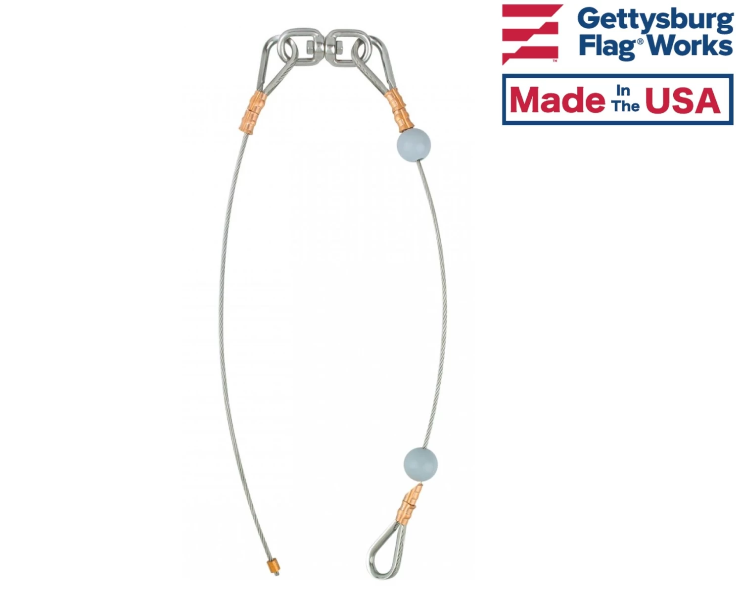This cable assembly is constructed of stainless steel aircraft cable, incorporating a stainless steel swivel to minimize the effect of unraveling due to rotation of the truck assembly and is designed for flagpoles with a winch installed at 4′ above grade.