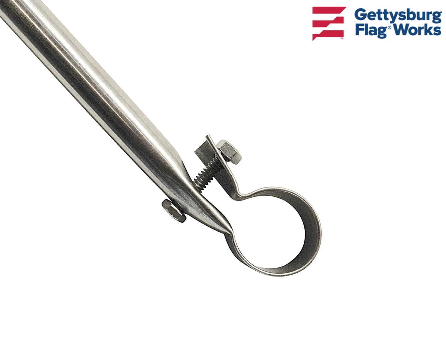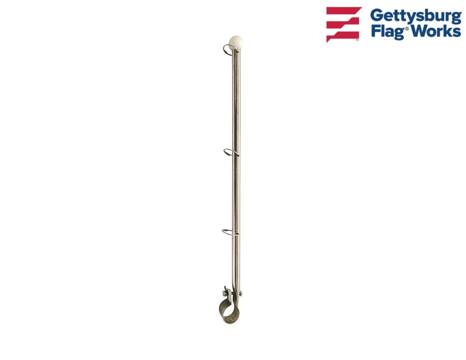 Marine grade rail mount flagpole to fit onto existing side-rails. Clamp style mechanism tightens to existing tubing allowing for easy installation on existing hardware.