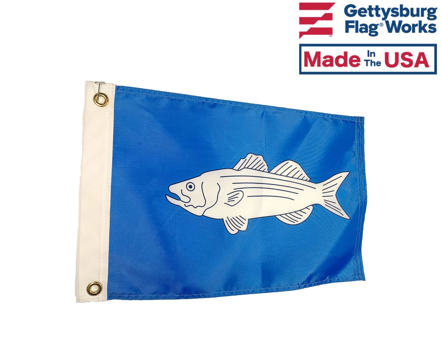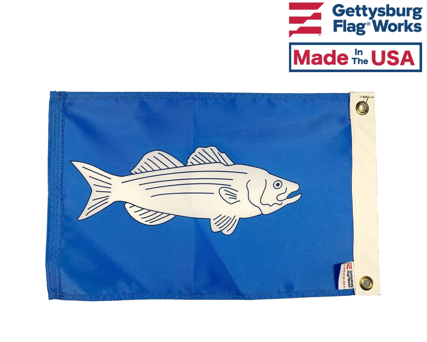 Striped Bass boat flag. Popular for fishing charters and sport fishing.