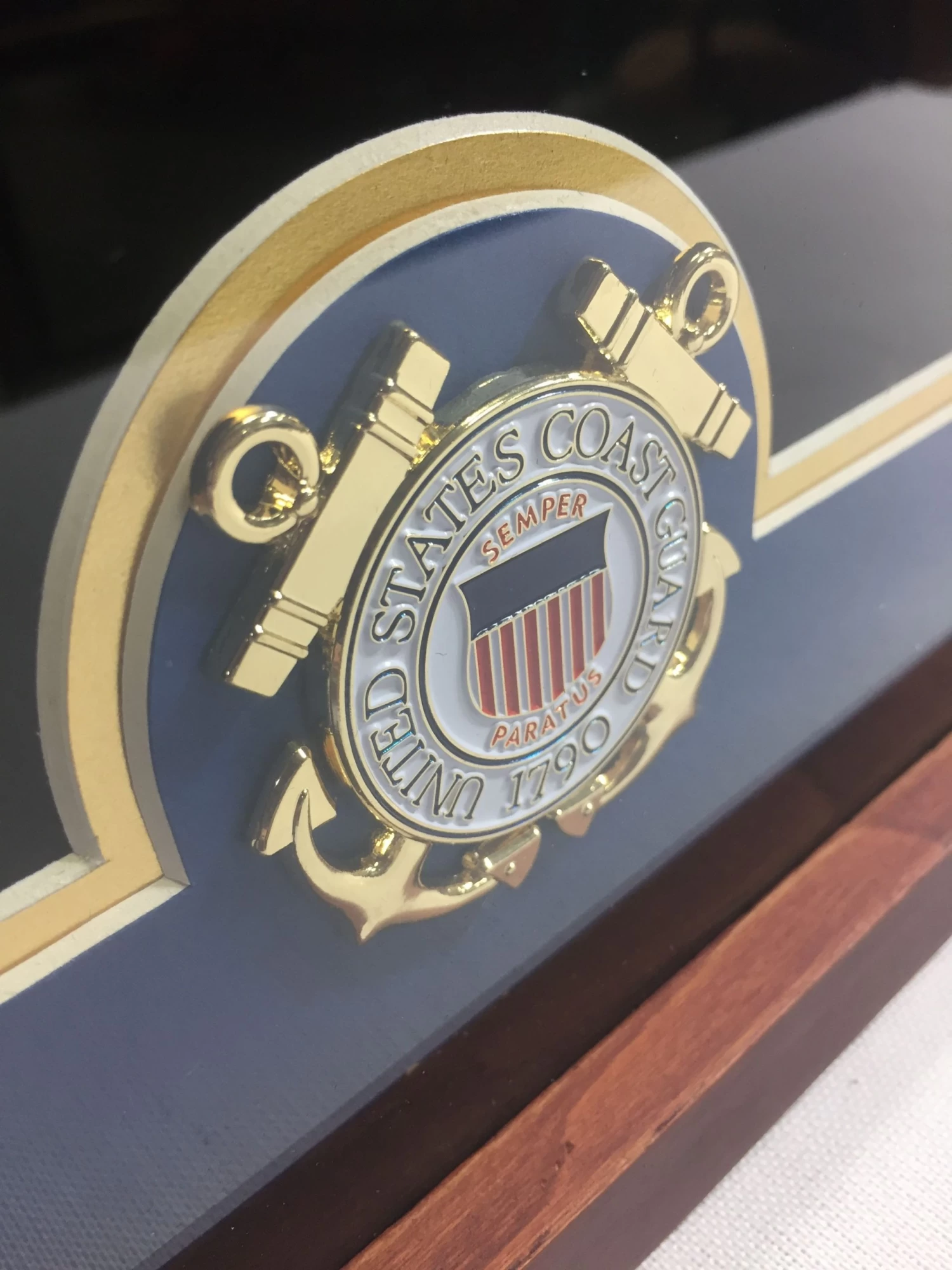 U.S. Flag Display Case With U.S. Coast Guard Medallion