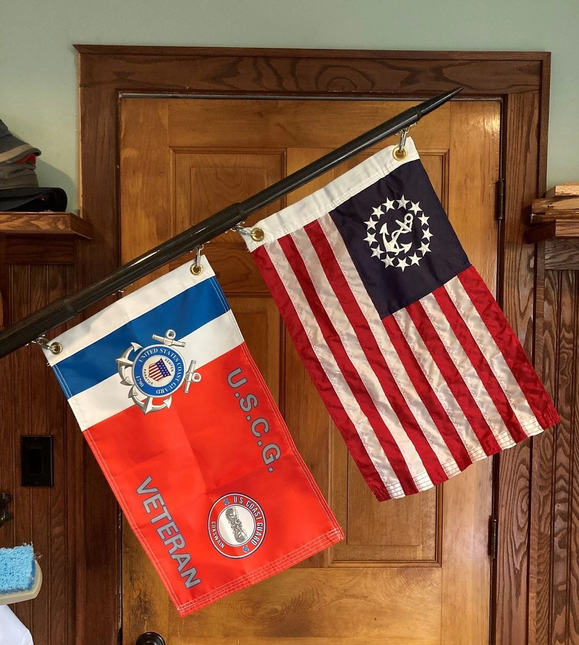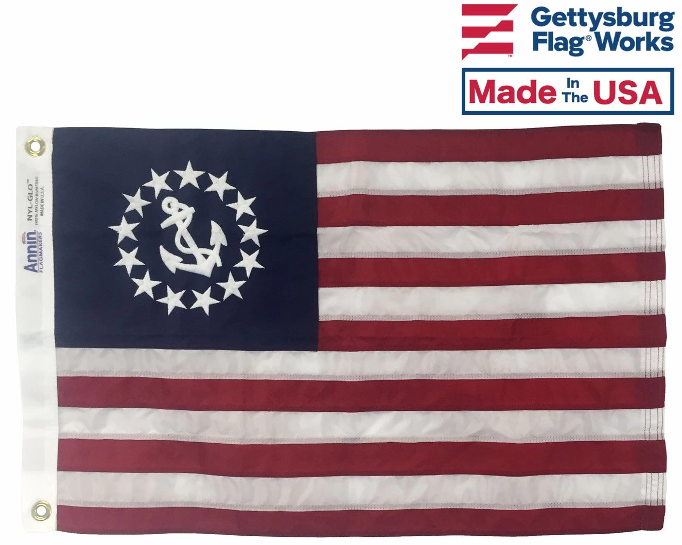 Flags made for marine use are made of durable 100% nylon fabric. These flags feature sewn or embroidered stars, and sewn stripes with a heavy canvas heading and brass grommets.