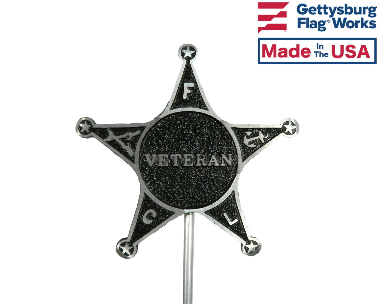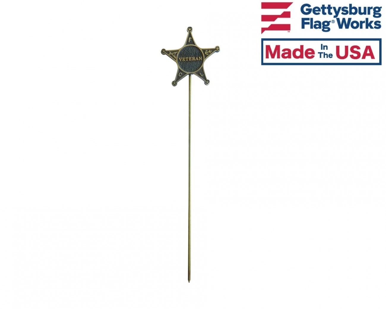 Cast star shaped Veteran grave marker, choose from gold colored solid bronze or solid aluminum with black highlights