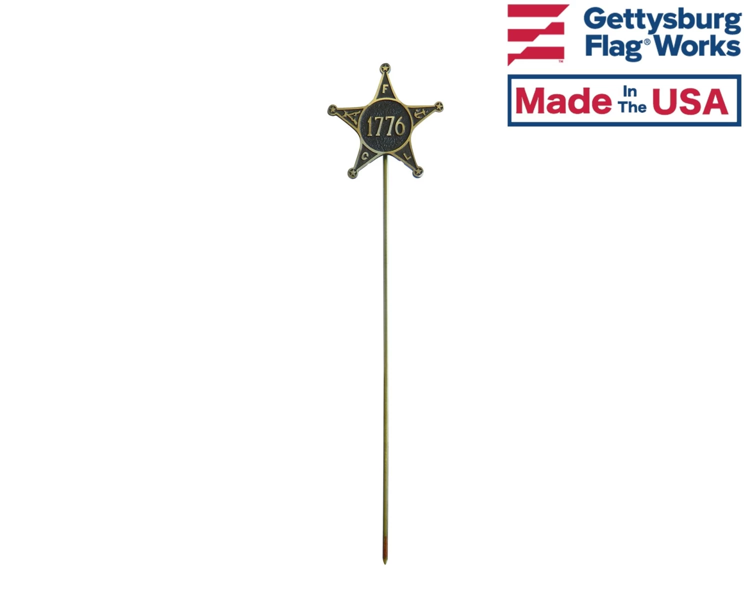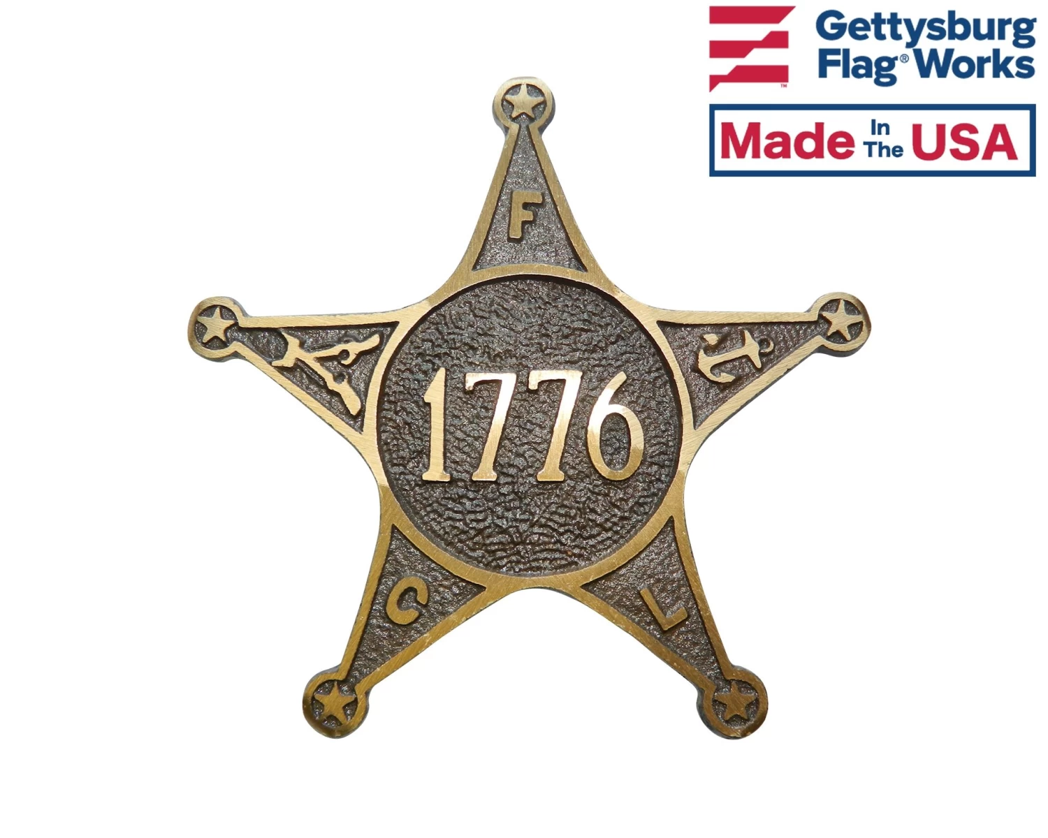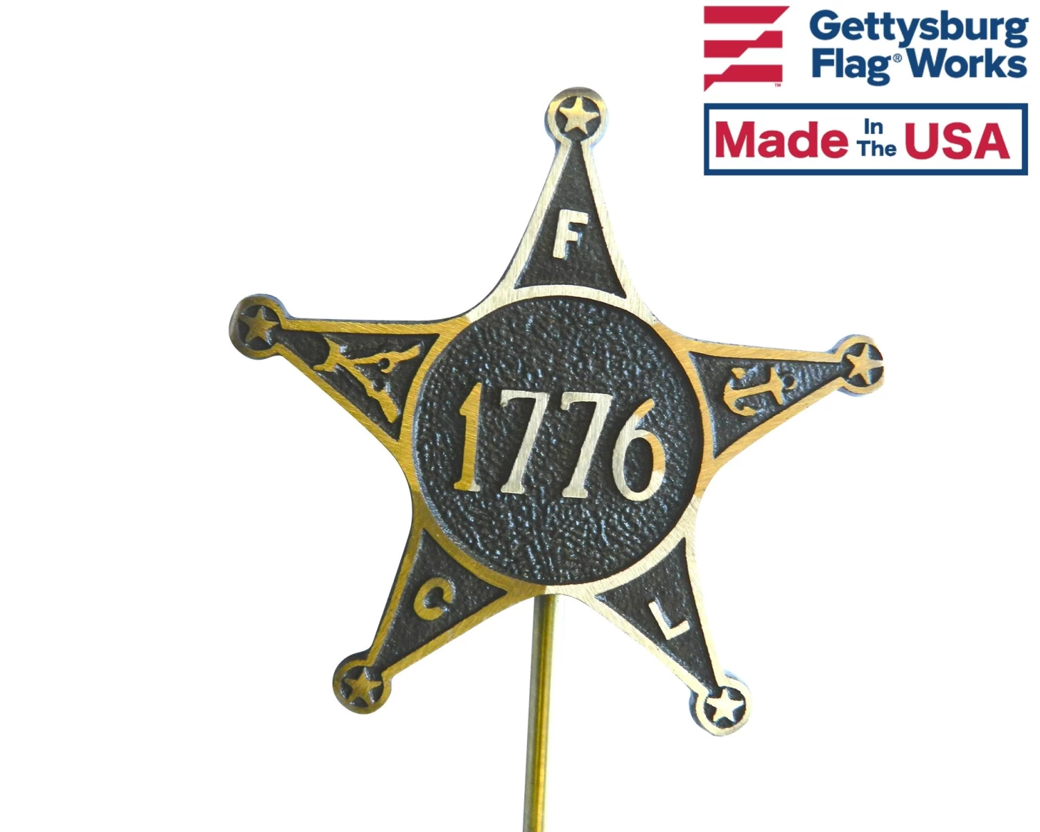 Cast bronze grave marker for veterans of the American Revolution of 1776. Star design includes initials, “F.C.L.”, which stands for Fraternity, Charity, Loyalty, the motto of the Grand Army of the Republic