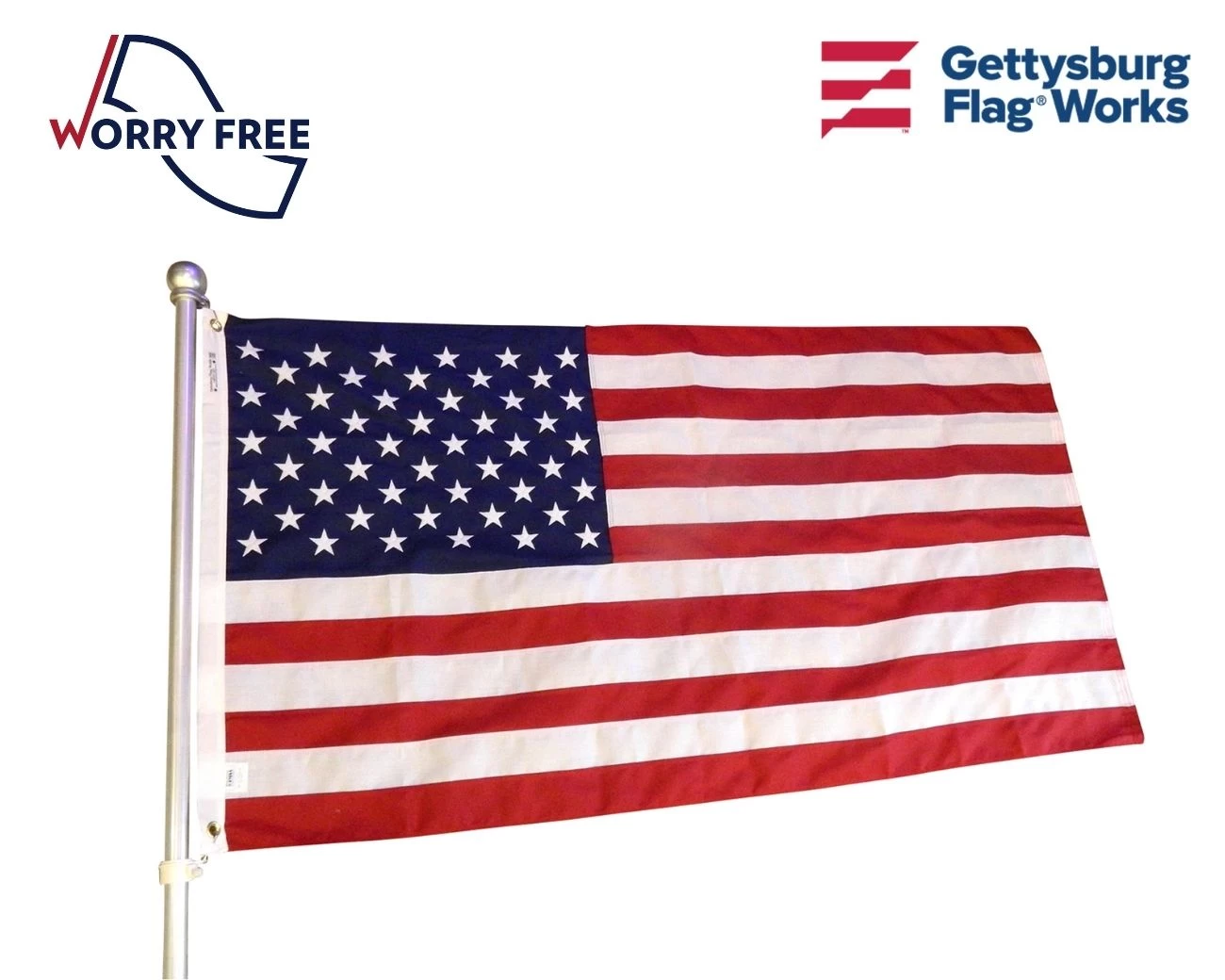All the benefits of our traditional Worry Free® American Flag set but stronger. This set features a beefier 1.25” diameter pole, 1.25” thick cast aluminum bracket and our toughest Heavy Duty Polyester US Flag. If you are in an area where the conditions are more extreme and you need a stronger set up, this set ticks all the boxes!