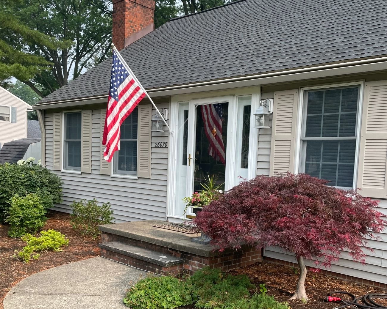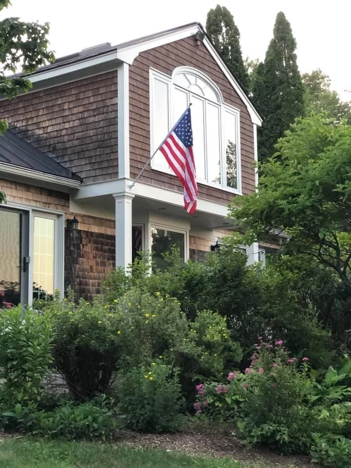 Our Worry Free® American flag set is a wonderful way to display the US flag off of your house, garage, or deck. This sets includes a Battle-Tough® Nylon American flag, a residential pole, and a house mount bracket. It comes assembled and ready for installation for your convenience. Call us at 1-888-697-3524 or if you are looking for a different set.