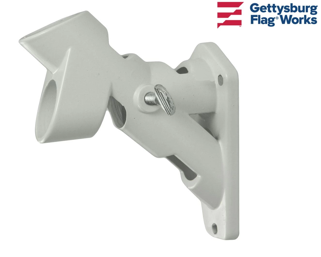 White, 2 position bracket made from die-cast aluminum.. With this bracket you have the option of hanging your flag at 45 degrees or 10 degrees.