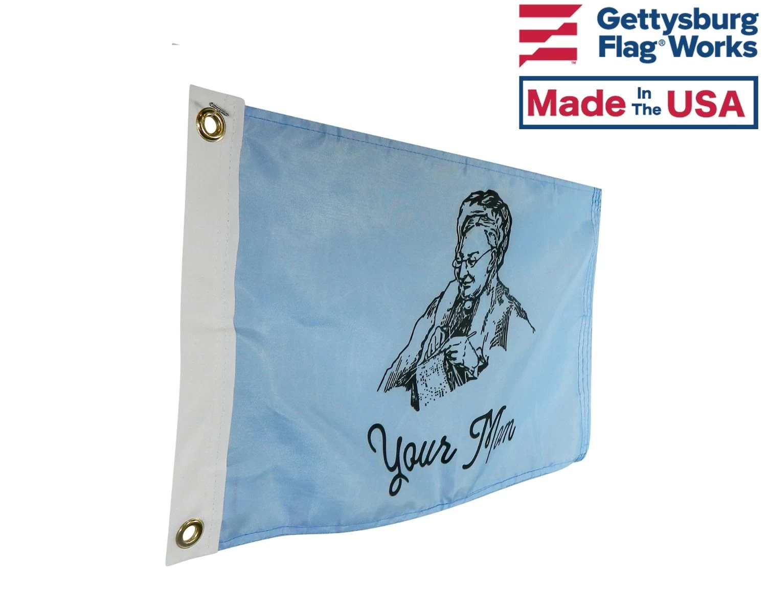 Remember Mom Jokes? We do – and despite being stupid and immature we still love them because we are stupid and immature. We think somethings are dumb funny and a good mom joke is near the top of the list. This flag is our throwback to a classic middle school joke rebuttal with a simple “Your Mom”. Fun for the boat or man-cave, printed on durable all-weather nylon and finished with header and grommet attachment for flying. Single layer flag with print visible correctly on front, reads backwards on reverse. Made in USA.